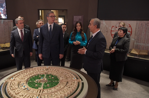Serbia’s President Aleksandar Vučić visited the Center for Islamic Civilization in Uzbekistan during his official trip to Tashkent, the Center’s press service reported.